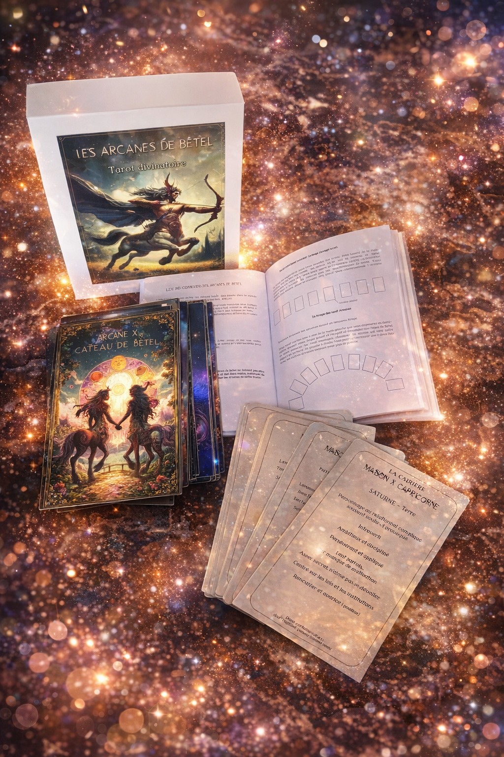 Ce Tarot divinatoire, Les Arcanes de Bétel, vous permettront l'accès à une dimension occultée de votre être qui favorise le dépassement de soi-même, la reconnexion à l'intime de soi, reconnexion à votre Divin.